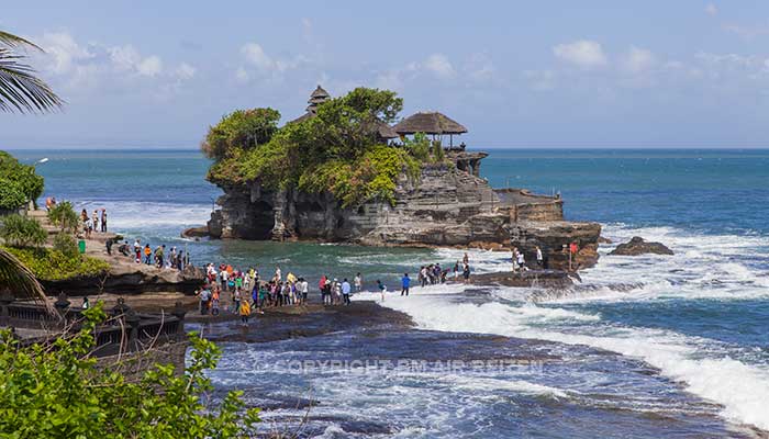 Onderweg brengen we een bezoek aan Bali’s beroemdste zeetempel, de Tanah Lot. Aan de westkust, op korte afstand van Kediri, wacht u een adembenemend schouwspel: de tempel van Tanah Lot, eenzaam gelegen op een rots even uit de kust. Tanah betekent aarde en Lot betekent zee. Letterlijk vertaald hebben we het dus over de Tempel van de Aarde, gelegen in de Zee. Net als vele andere tempels op Bali is de Tanah Lot verbonden met de heilige Brahman priester Danghyang Nirarta. Deze priester besloot, tijdens één van zijn reizen in de 16de eeuw, op deze prachtige plaats te overnachten. Later besloten de inwoners op deze prachtige plaats een tempel te bouwen, de Tanah Lot. De tempel behoort tot één van de zes belangrijkste tempels van Bali. De tempel is opgedragen aan de God Van de Zee. In de ochtenduren kunt u hier genieten van het prachtige uitzicht op de tempel.