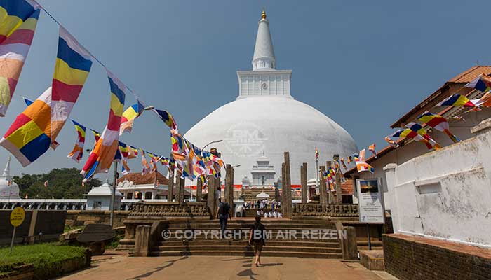 Vanaf het ontstaan als een nederzetting van minister Anuradha in de 6e eeuw voor Christus, ontwikkelde Anuradhapura zich in een snel tempo en werd het de hoofdstad van het eiland onder bewind van koning Pandukhabaya (437-366 v C). In het midden van de 3e eeuw v. Chr. is Anuradhapura beroemd door de voortreffelijkheid van haar tempelkunst en paleisarchitectuur, het vernuft en de vaardigheid van de irrigatie-ingenieurs, edele olifanten, edelstenen, fijne specerijen en haar militaire macht. De stad bereikte haar hoogtepunt in het begin van de christelijke jaartelling. Het gebied rondom de stad werd omringt door 4 enorme muren van elk 26 km lang en telde vele inwoners en prachtige boeddhistische heiligdommen en openbare gebouwen. Een bezoek aan de enorme stupa’s Jetavana Dagoba, Abayagiri Stupa & Golden Sand Stupa mag zeker niet gemist worden. Deze tempels en monumentale dagoba’s, gebouwd onder grootste architectonische prestaties, zijn alleen in schaal overtroffen door de grote piramides bij Gizeh. Anuradhapura staat op de Werelderfgoedlijst van de UNESCO.