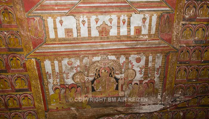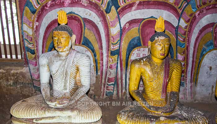 Hierna gaan we een bezoek brengen aan de oude rotstempel van Dambulla. Deze rotstempel dateert uit de 2e eeuw voor Christus. De wand- en plafondschilderingen geven de voornaamste episoden uit de levens van Boeddha weer. De bekendste tempels zijn hier de gouden tempel van Dambulla (Rangiri Dambulla Uyanwatta Rajamaha Viharaya), welke ook op de Werelderfgoedlijst staat en de rotstempel Rangiri Dambulla Rajamaha Viharaya. Enkele beelden van Boeddha hebben in liggende positie enorme afmetingen, zoals we die ook aantreffen in o.a. Polonnaruwa. Vanuit het tempelcomplex kunt u genieten van een prachtig uitzicht over de bergen, de dichte bossen en de regenwaterreservoirs. Op circa 100 meter hoogte ligt de Gouden Tempel van Dambulla, die bestaat uit 5 grotten. In deze grotten zijn de plafonds beschilderd met prachtige boeddhistische afbeeldingen. Monniken mediteerden en leefden in de grotten. Tevens staan er meer dan 150 Boeddhabeelden in deze rotstempel. De Gouden Tempel van Dambulla is de beroemdste en het meest geliefde boeddhistische heiligdom van Sri Lanka. De eerste grot is genaamd Devaraja Viharaya. Deze grot herbergt een 14m lang Boeddhabeeld. De tweede en tevens grootste grot is de Maharaja Vihara, wat in het Singalees De tempels van de grote koningen betekent. In deze grot staan vele prachtige Boeddhabeelden. Tevens vinden we in deze grot een van de mooiste muurschilderingen van Sri Lanka. In de derde grot Maha Vihara, vinden we muur- en plafondschilderingen uit de Kandyse periode. Deze beschilderingen zijn gemaakt in opdracht van koning Kirti Sr Rajasingha, een beroemde boeddhistische prediker. In deze grot staat ook een standbeeld van de koning en meer dan 50 Boeddhabeelden. U kunt heerlijk rondwandelen door de grotten en genieten van alle pracht en praal.