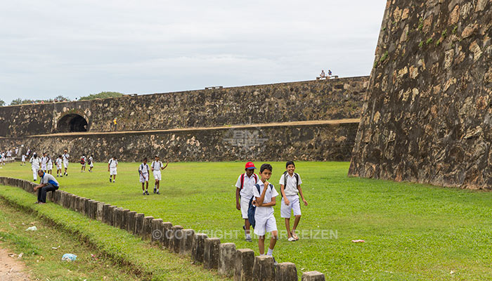 In Galle brengen we een bezoek aan het Dutch Fort. Het fort telt een rijke historie en werd oorspronkelijk gebouwd door de Portugezen. In 1640 versloegen de Nederlanders de Portugezen en verbouwde het Fort tot een complex van 38 hectare, met prachtige huizen, straten en een kerk. In 1796 moest Nederland capituleren en werd het Fort overgenomen door de Britten. Het huidige Galle Fort, dat sinds 1988 onder de UNESCO valt, is in goede staat en telt maar liefst 473 huizen. Bezienswaardig zijn o.a. de VOC-pakhuizen en kantoren, de zware bolwerken, bastions genaamd, het Punt Utrecht, waarop sinds 1940 de vuurtoren van Galle staat, het Galle Museum, de Nederlands Hervormde kerk en het oude Hollandse klokkentorentje uit 1701.