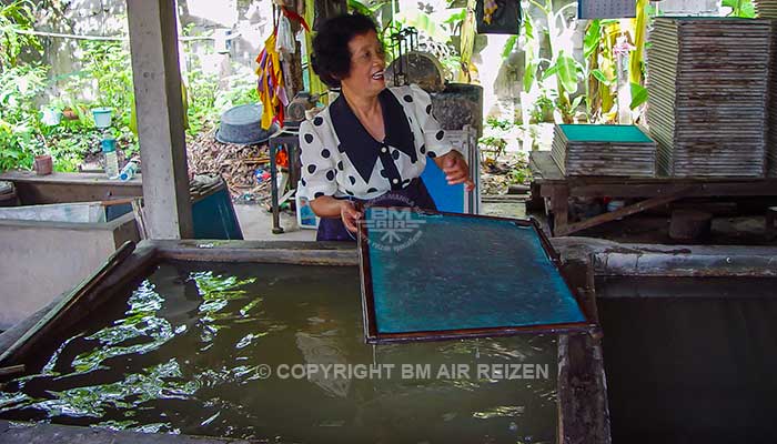 In Umbrella Village worden van generatie op generatie de beroemde parasols gemaakt. Ze worden gemaakt van rijstpapier en vervolgens beschilderd. We zien hier het gehele proces. Er zijn parasols en waaiers in allerlei soorten en maten. Uiteraard kunt u hier een prachtige gekleurde parasol aanschaffen. De parasols worden met de hand beschilderd. Er zijn hier echte kunstenaars aan het werk.