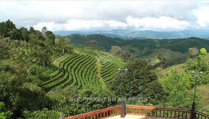 We rijden in noordelijke richting naar Doi Mae Salong. In dit dorp, prachtig gelegen tussen de heuvels, wordt de beste thee van Thailand geproduceerd. In 1961 vestigden zich hier vele Chinese vluchtelingen. We maken een wandeling door het dorp, maken kennis met de lokale bewoners en bezoeken een theeplantage. Uiteraard drinken we hier een verse kop Oolong Tea. Vanuit het dorp kunt u verder genieten van prachtige uitzichten over het berglandschap.