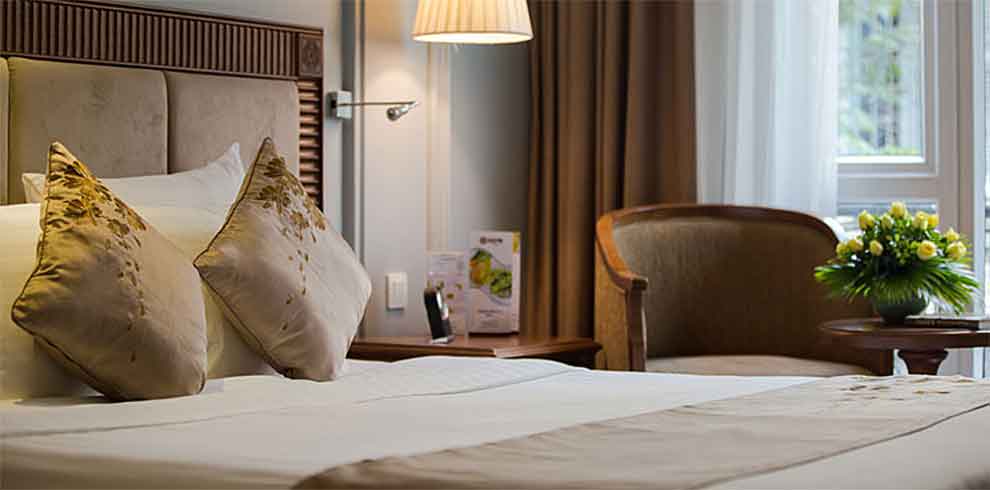 Ondanks de centrale ligging, kun je in het Hanoi Pearl Hotel heerlijk tot rust komen. De kamers zijn ruim en stijlvol ingericht met een mix van modern comfort en traditionele Vietnamese elementen. Geniet van een goede nachtrust in een heerlijk bed en stap onder een warme douche.