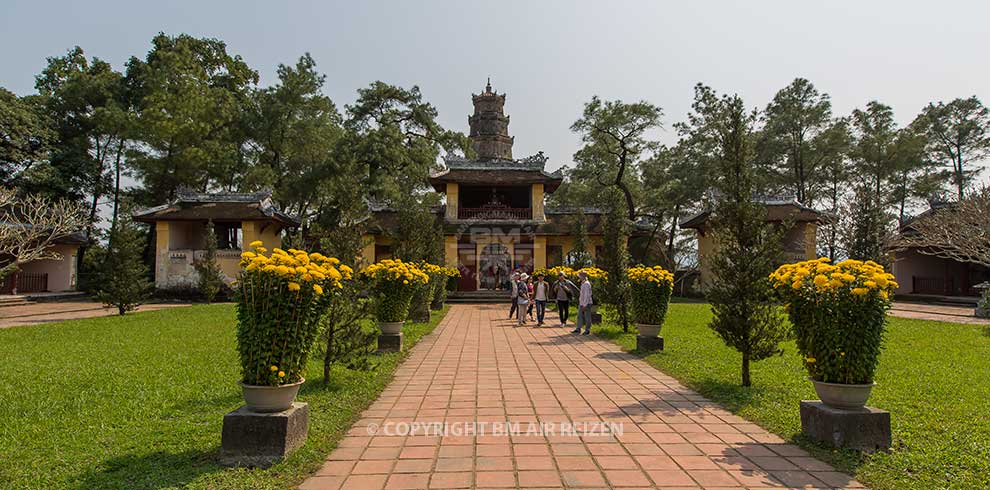 We varen langzaam over de rivier en onderweg bezoeken we de Thien Mu Pagode. Deze pagode dateert uit 1601 en is één van de oudste tempels in Hué. De zeven verdiepingen van de tempeltoren vertegenwoordigen ieder een andere incarnatie van Boeddha. In de pagode bevinden zich enkele Boeddhabeelden.